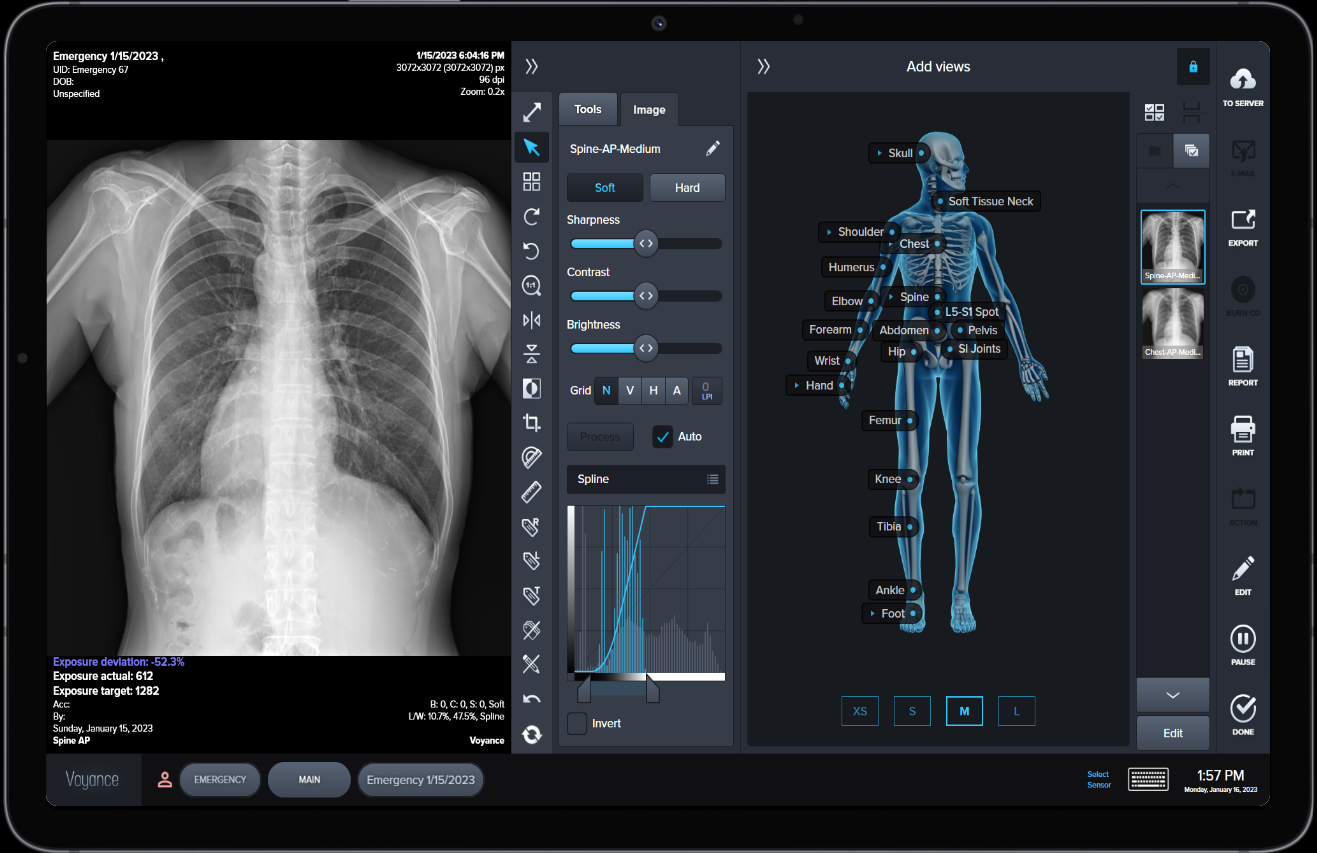 A modern single-page design, equipped with advanced intelligent automation capabilities, addresses any manual tasks or workflow steps to streamline processes. This includes worklist import, automatic image processing, and auto PACS archiving, increases technologist productivity by 1.5 times, and enhances patient care.